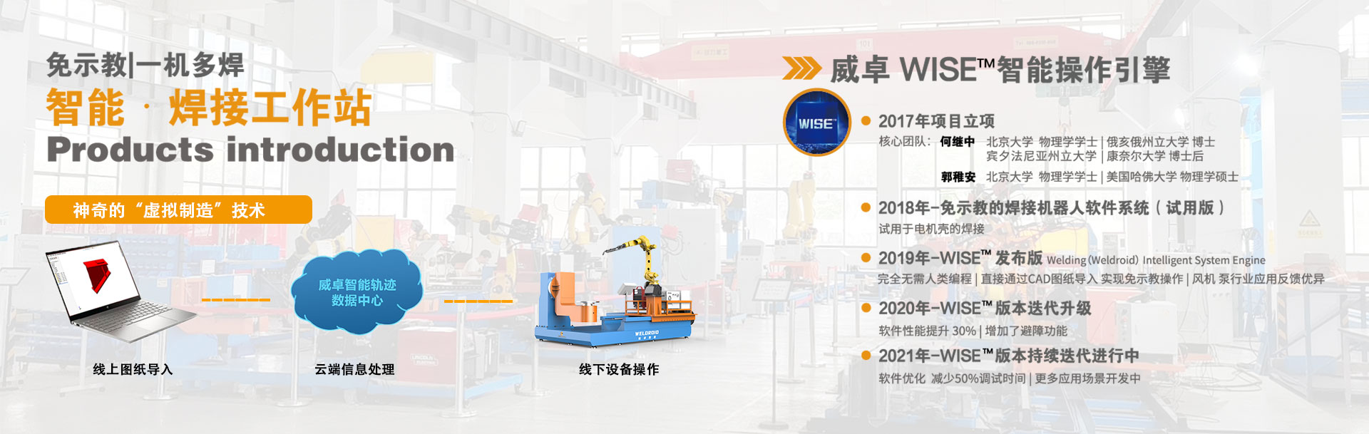 無錫威卓智能機器人有限公司成立于2017年,是無錫市政府引進的科技領(lǐng)軍型高新技術(shù)企業(yè),公司研發(fā)團隊80余人,我們堅持自主創(chuàng)新,利用自主開發(fā)的虛擬制造技術(shù)對傳統(tǒng)焊接行業(yè)進行升級改造。 公司主推的工業(yè)風機系列-智能焊接工作站產(chǎn)品,具有免示教、實時跟蹤、簡易工裝、傻瓜式操作等優(yōu)點,真正幫助企業(yè)解決了招焊工難,用工成本高,焊接質(zhì)量不穩(wěn)定等問題。